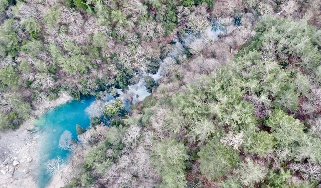 Depremlerin meydana geldiği 6 Şubat'tan bu yana biriken su, burada ağaçların arasında turkuaz mavisi bir gölete dönüştü. Sincan Mahallesi'nde yaşayan Resul Kara, depremler sonrası gördükleri manzara karşısında şaşırdıklarını belirtti.