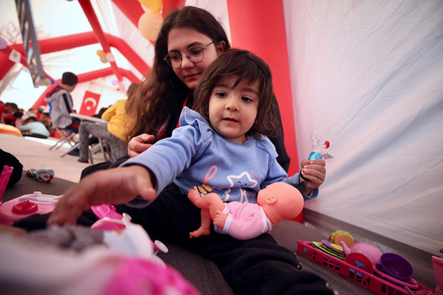 Kentte yardım çalışmalarını aralıksız sürdüren Türk Kızılay, alanında uzman 13 kişilik psikolojik destek ekibi aracılığıyla da prefabrik ve çadır kentlerde kurulan 2 psikososyal etkinlik çadırı ve 1 mobil oyun aracında depremden etkilenen çocuklar için aktiviteler düzenliyor. Uzmanlar, çocukların boyama, okuma, resim ve geleneksel zeka oyunları oynayarak deprem psikolojisini kolay atlatabilmeleri için güçlü yönlerini ortaya çıkarma ve destekleme çalışması da yürütüyor. Kızılayın uzmanları, bir yandan da ailelerle bir araya gelerek psikososyal destek veriyor.