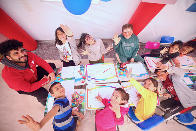 Kentte iki psikososyal destek çadırı ve 1 mobil çocuk dostu alanın bulunduğunu belirten Ergül, "Burada çocuklarla psikososyal aktiviteler gerçekleştiriyoruz. Çocuklara sanatla, sporla ve oyunla kendilerini ifade edebilmeleri için alanlar tanıyoruz. Bu yaşadıkları zorlu durumla baş edebilmeleri çalışmalarımızı gerçekleştiriyoruz" diye konuştu.