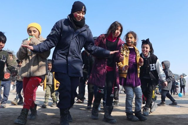 Kahramanmaraş merkezli depremin vurduğu Malatya'da tüm kurumlar seferber olup, saha çalışması yürütürken, kadın askerler de çocuklara şefkatleri ile ablalık yapıyor. Sahada ekip arkadaşlarına yardım eden Jandarma Astsubay Üstçavuş Belkıs Şahiner, çocuklarla yakından ilgilenip, depremin izlerini hafızalarından silmelerine yardımcı oluyor