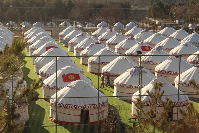 DHA'nın haberine göre Kırgızistan çadırları yağmur, kar ve güneşten etkilenmiyor. 4 kişilik bir ailenin rahatça barınabilecekleri çadırlarda istenildiği takdirde 15 kişi kalabiliyor.