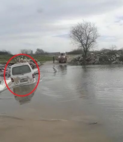 Bursa'nın Karacabey ilçesinde, dere suyunun az olduğu dönemlerde araçların da geçiş sağladığı beton köprüden karşıya geçen minibüs, akıntıya kapılarak sürüklendi. Sürücü ve bir yolcu ise kayalıklara çarparak, duran minibüsten son anda atlayarak kurtuldu. Bu anlar ise çevredeki bir kişi tarafından cep telefonu kamerasıyla görüntülendi