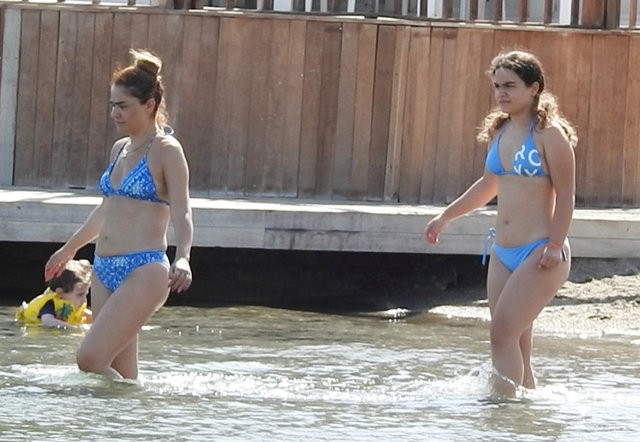 Ortakent'teki bir plajda görüntülenen Derya Bedavacı, kızı ile birlikte gün boyunca denizin ve güneşin keyfini çıkardı.