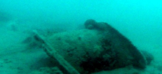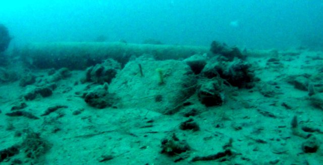 Topları, savaş gemisine ait kazanı, ahşap aksam makaraları, gemi porsenelinin kullandığı aletleri ve bazı plaketleri görünce şaşırdım. Ardından kameranın sabit durması için ucuna kurşun bağlayıp, misinayla kamerayı bir kez daha suya indirdim ve 15 dakikalık çekim yaptım.