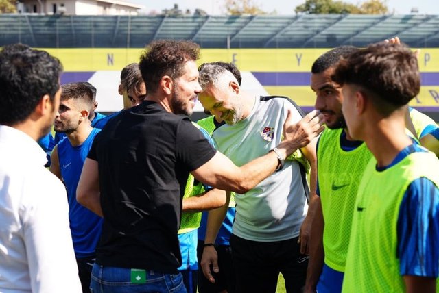 Atletico Madrid Teknik Direktörü Diego Simeone, eski öğrencisi Arda Turan'ın çalıştırdığı Eyüpspor'un antrenmanını ziyaret etti.