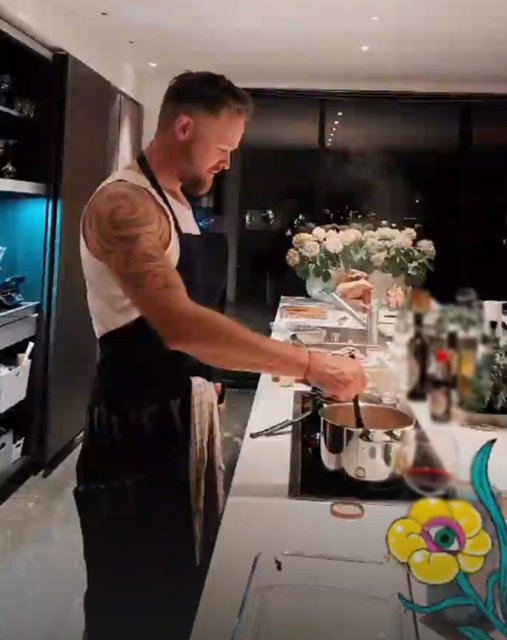 Ardından mutfağa giren ünlü isim, sevgilisinin bu fotoğrafını ise, "Saatlerdir yemek yapıyor iki gözümün çiçeği..." notuyla 4,7 milyon takipçisinin bulunduğu Instagram hesabından paylaştı.