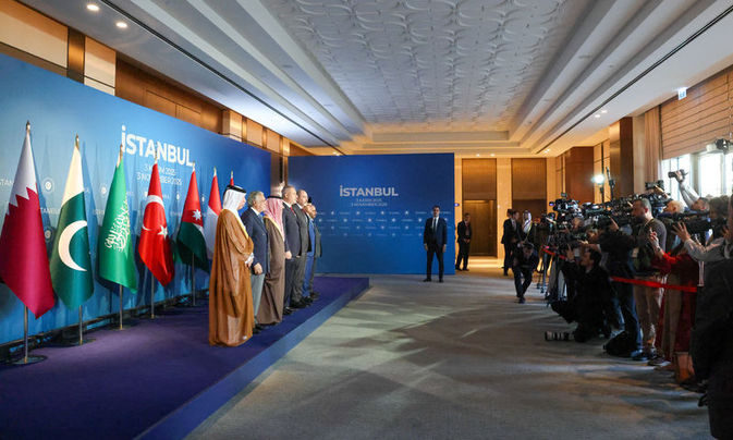 Toplantı öncesinde Fidan, Endonezya Dışişleri Bakanı Sugiono, Pakistan Dışişleri Bakanı Muhammed İshak Dar, Suudi Arabistan Dışişleri Bakanı Faysal bin Ferhan Al Suud, Ürdün Dışişleri Bakanı Eymen es-Safedi ve BAE ile Katar'ın temsilcileriyle aile fotoğrafı çektirdi.
