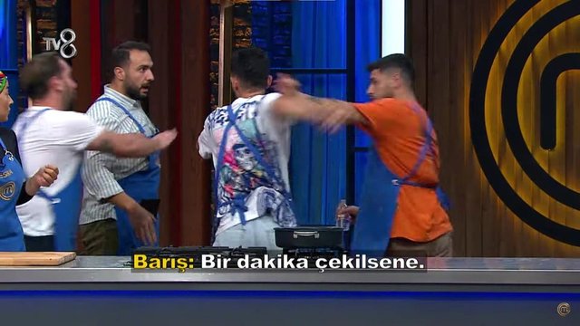 Masterchef Barış, fragmanda şu sözleri ifade etti: "Bak, sana diyorum ki sessiz konuş. Niyse sen bizi reklam ediyorsun millete? Sen elini kolunu oynatıyorsun Barbaros? Elin kolun oynuyor. Bak, o elini kolunu...benimle konuşurken indir." Barış daha sonra ise "Bir dakika çekilsene" diyerek Ayaz'ın kendini tutmasını engellemeye çalıştı.