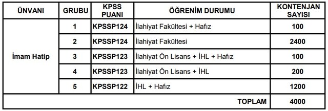 4 BİN DİN GÖREVLİSİ ALIMI BAŞVURU DETAYLARI