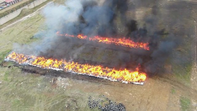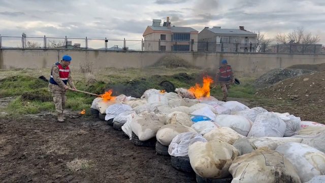 Hakkında müsadere kararı alınan uyuşturucu maddeler Diyarbakır Valiliği'nce oluşturulan heyet huzurunda Lice İlçe Jandarma Komutanlığı uyuşturucu madde imha alanında yakılarak imha edildi. O anlar, havadan görüntülendi.