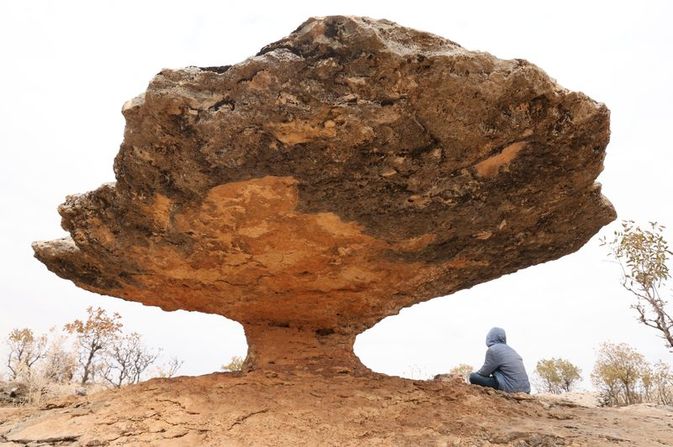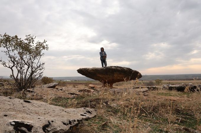 İnce bir sütunla ayakta duran geniş kaya parçası, yıllara meydan okuyor.