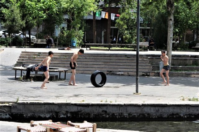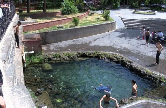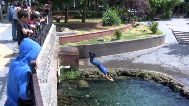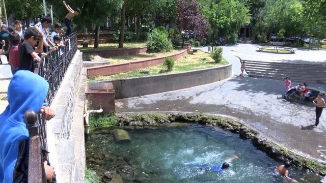 Diyarbakır'ın Sur ilçesindeki tarihi Anzele Parkı'nda bulunan süs havuzuna, yasak ve tehlikeli olmasına karşın çocuklar, bu yıl da serinlemek için girmeye başladı. Çocuklar yaklaşık 3 metrelik yükseklikten havuza atlarken, mahallede oturan Metin Sönmez, bu durumun tehlikeli bir eğlence haline dönüştüğünü söyledi