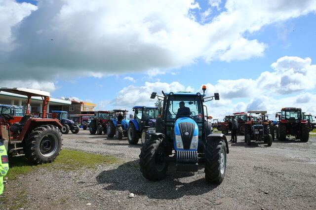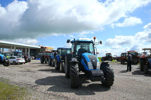 Yöredeki çiftçilerin renk renk traktörleriyle konvoy halinde muayene için istasyona gelişi güzel görüntü oluşturdu.