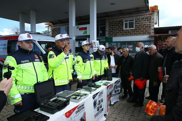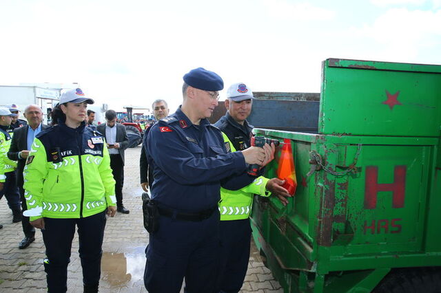 İstasyona getirilen traktörlerin TÜVTÜRK ekiplerince muayenesi yapılırken, jandarma ekipleri de kurdukları stantlarda çiftçilere trafik güvenliği konusunda bilgilendirme yaptı.
