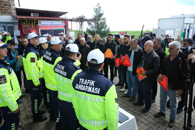 Ayrıca, traktörlerin trafikte görünürlüğünün artırılması amacıyla Sur İlçe Jandarma Komutanlığı ekiplerince 100 traktöre reflektör, 20 traktöre ise sarı flaşörlü ikaz lambası takıldı.