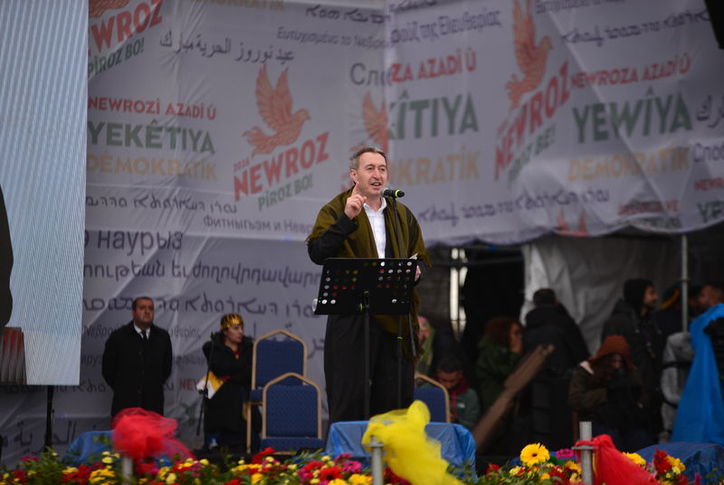 Bazı müzik gruplarının seslendirdiği şarkıların ardından terör örgütü PKK elebaşı Abdullah Öcalan’ın mesajı okundu. Ardından DEM Parti Eş Genel Başkanı Tuncer Bakırhan burada yaptığı konuşmada, “Hepiniz görüyorsunuz Orta Doğu'da her sınır bir yara. Her başkent bir yangın yeridir neredeyse. Bu yangının tam ortasında Kürtler ve Kürt coğrafyası var. Bu tablo içinde Kürtler hem kendi güvenliklerini sağlamaya çalışıyor hem de bölgenin istikrarına katkı sunmaya çalışıyor. Bugün özellikle Ankara'nın önünde tarihi bir fırsat var. Kürt meselesini çözen bir Türkiye bölgede güçlü bir aktör olur. Gelin geleceğimizi kaybetmeyelim. Geleceği kazanmak için demokratik bir zemini hep birlikte büyütelim. Geçmişin yaraları geleceğimizi daha fazla kanatmasın. Bu ülke 100 yıldır defalarca kanadı. Artık bu kanamayı durduralım. Hani hep soruyorlar ya ‘Kürtler ne istiyor’ diye. Kürtler Türkiye'de kimliğinin tanınmasını istiyor. Kürtler ana dilinde eğitim istiyor. Kürtler anayasal güvence istiyor. Kürtler yerel demokrasi istiyor. Kürtler eşit yurttaşlık istiyor. Kürtlerin talebi ayrılık değil, ortaklıktır, inkar değil, tanınmadır, lütuf değil, haktır. Kürtler yönetime ortak olmak istiyor. Kürtler artık devletle münazara değil müzakere yapmak istiyor. Şimdi sıra barış yasalarında, şimdi sıra hukuki güvencede, şimdi sıra devlette ve iktidardadır. Artık sözden yasaya, temenniden güvenceye, vaatten eyleme geçme zamanıdır. Cezaevindekiler artık özgür olmalıdır. Figenler, Selahattinler, Leylalar, Ayşeler ve binlerce tutsak özgür olmalı. Dağdakiler demokratik siyasete katılabilmeli. Sürgündekiler evlerine dönebilmelidir. Demokratik siyasete katılabilmelidir. Halkın iradesini gasbeden kayyımlar artık gitmelidir. Öcalan'ın statüsü ve çalışma koşulları yasal düzenleme ile teminat altına alınmalıdır. Öcalan'ın bu meydanda halkıyla buluşmasının önü artık açılmalıdır” dedi.
