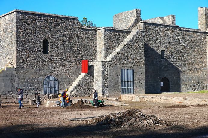 "Temel kısmında daha küçük boyutlu kırma taş malzemesinin kullanılması da dikkat çekicidir. Yapılan kazı çalışmalarında aynı zamanda Osmanlı döneminde bu surların hemen önüne çeşitli mekanların eklendiğini de görüyoruz. Bu mekanlara ait şu anda iki kemerin başlangıç seviyesi olduğu kısımlar ortaya çıkarıldı. Alan Cumhuriyet döneminde çok yoğun bir şekilde kullanıldığından dolayı aynı zamanda betonarme yapılara ait izler de var."