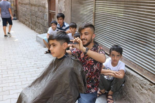 Berber Resul Yılmaz, Diyarbakır'da maddi imkanı bulunmayan çocukların bayram tıraşlarını yapmak için sokak sokak geziyor. Yılmaz'ın hedefi Kurban Bayramı öncesi bin çocuğa ulaşmak...