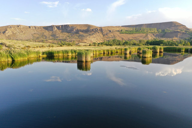 Iğdır'da bulunan doğa harikası Üçkaya gölü, her mevsim sunduğu güzellikleriyle büyülüyor. AA'nın haberine göre Tuzluca ilçesine bağlı Üçkaya köyündeki göl, dağlık arazi yapısına sahip bölgede doğaya renk katıyor.