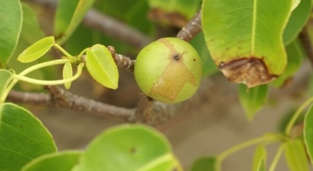 Manchineel (Hippomane mancinella) Florida, Karayipler ve Orta ve Güney Amerika'nın bazı bölgelerine özgü yaprak dökmeyen bir ağaçtır. Yaprakları ve meyveleri elmaya benzer ve bazen zararsız bir şekilde “plaj elması” olarak bilinir.