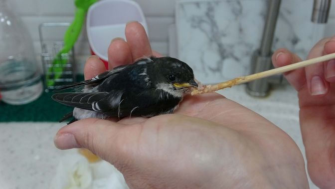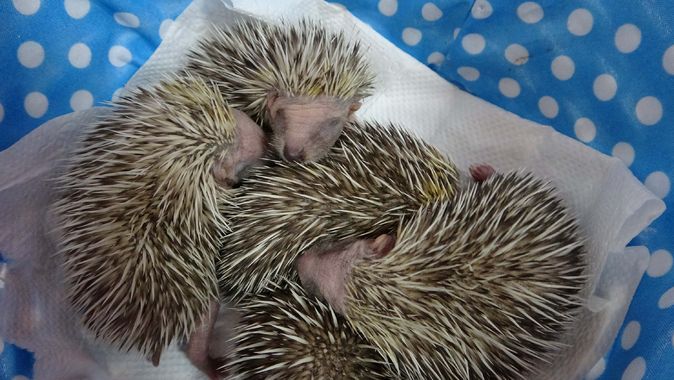 Yine maalesef anneleri bir arabanın çarpması sonucu ölen 5 kirpi yavrumuz var. En küçük baykuş dediğimiz kukumav yavrularımız var. Bir de en büyük baykuş dediğimiz puhumuz var. Bunların bakım ve tedavilerini düzenli olarak yapıyoruz. Bir de yavru kırlangıcımız var. Yavrular çok ufak olduğu için her gün onları biberonla besliyorum. Her ne kadar anne gagası gibi olmasa da doğaya uyumlu olan özel bir tahta çubuk ile onları besliyorum.