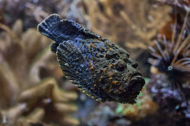 Taş balıklarının benekli kamuflajları ve deniz ortamlarının çamurlu veya kayalık diplerinde kalma alışkanlıkları nedeniyle üzerlerine basılması kolaydır. Bu yüzden bir dalgıç fark etmeden bu balığın sırtındaki 13 dikenden biriyle sokulursa tedavi edilmediği takdirde 6 saat içinde dayanılmaz bir acıyla beraber ölüme sebep olabilir. Buna rağmen taş balığı, zehirli dikenleri dikkatlice çıkarıldıktan sonra yenilebilir hale gelebilen bir canlıdır ve bazı ülkelerde tüketilir.