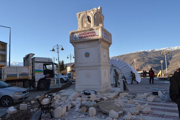 Elazığ'ın Sivrice ilçesini vuran 6.8 büyüklüğündeki depremden etkilenen Malatya'nın Doğanyol ilçesindeki saat kulesi de yıkılan yapılar arasında yer aldı. Saat kulesinde bulunan ve yere düşen iki saatin 20.55'de durduğu görüldü