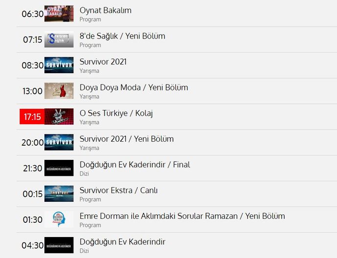 12 MAYIS 2021 TV8 YAYIN AKIŞI