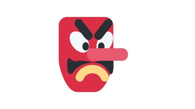 Japon mitolojisinde bir iblis olan Tengu maskesini temsil eden bu emoji, "Tengu olmak" yani zalimce ve yaramaz davranışlar sergilemek anlamına gelir. Sohbet sırasında partnerinize bu emoji gönderirseniz sınırı aşmak üzere olduğunu ima edersiniz.