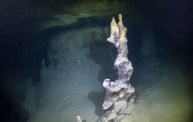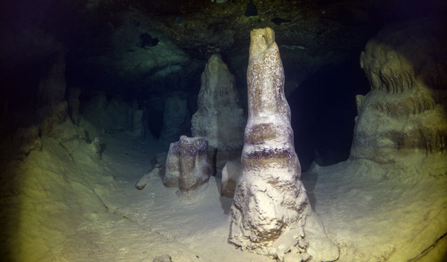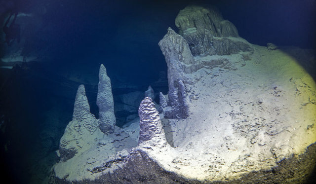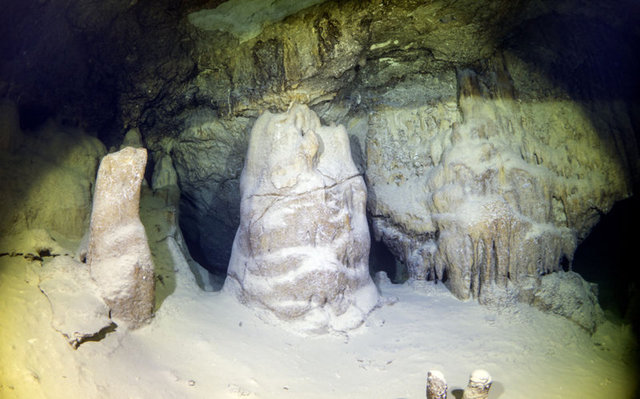 Doğu Akdeniz'de 5 yıl önce keşfedilen, Keldağ Dağı'nın altındaki kum piramitleri, bacaları, sarkıt ve dikitleriyle doğal güzelliğe sahip Büyük Mağara su altı kamerasıyla görüntülendi