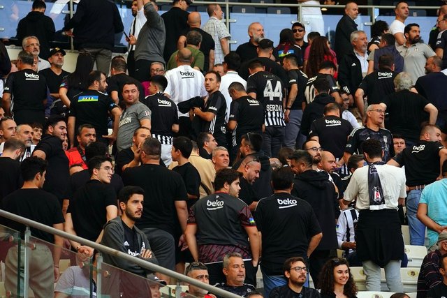 Beşiktaşlı taraftarlar, müsabakanın ilk 5 dakikasında sessizliğe bürünerek, yönetim ve futbolcuları protesto etti. Sahaya sırtını dönen taraftarlar, takımlarına destek vermedi.