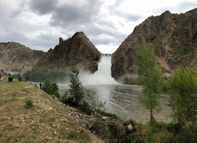 Kılıçkaya Barajı'nda doluluk oranı yüzde 100'e ulaşınca kapaklar açıldı