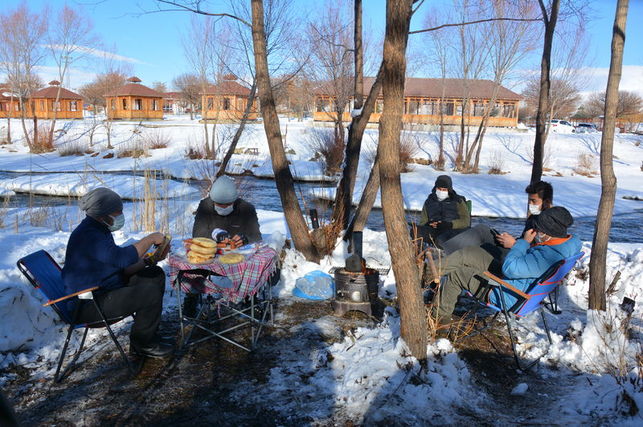AA'nın haberine göre bu kapsamda dondurucu soğukta Deli Çay üzerindeki balık bendine çadırlarını kurarak kamp yapan dernek üyeleri, oltalarıyla balık tuttu, ateş yakarak eşsiz manzaranın tadını çıkardı.