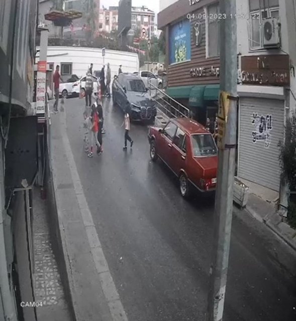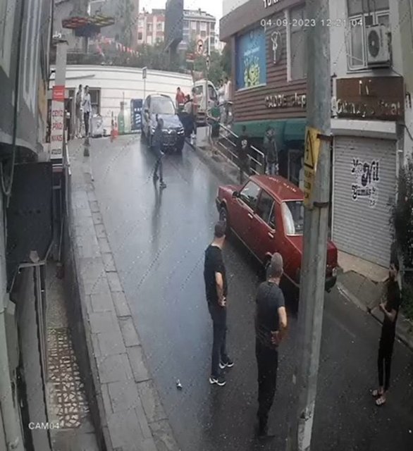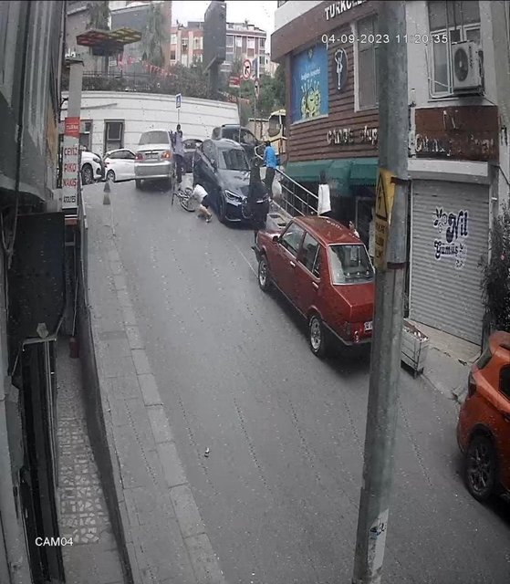 DHA'nın haberin göre kayganlaşan cadde de park halindeki bir otomobil kayarak, başka park halindeki araca çarparken, caddede yürüyerenler de zor anlar yaşadı. O anlar güvenlik kamerasına yansıdı.
