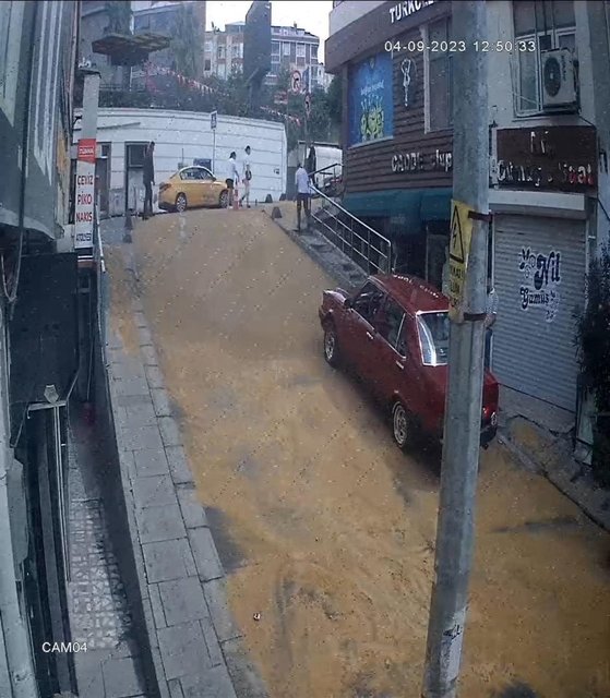 O anlar güvenlik kamerası tarafından saniye saniye görüntülendi. İhbar üzerine olay yerine gelen belediye ekipleri yağ dökülen yola kum dökerek yolu trafiğe kapattı.