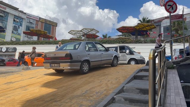 Cadde de yokuştan aşağıya akan yağ, kısa süre sonra sürücülere ve vatandaşlara zor anlar yaşattı. Park halindek, bir otomobil caddeye akan yağ nedeniyle kayarak park halindeki başka araca çarptı.