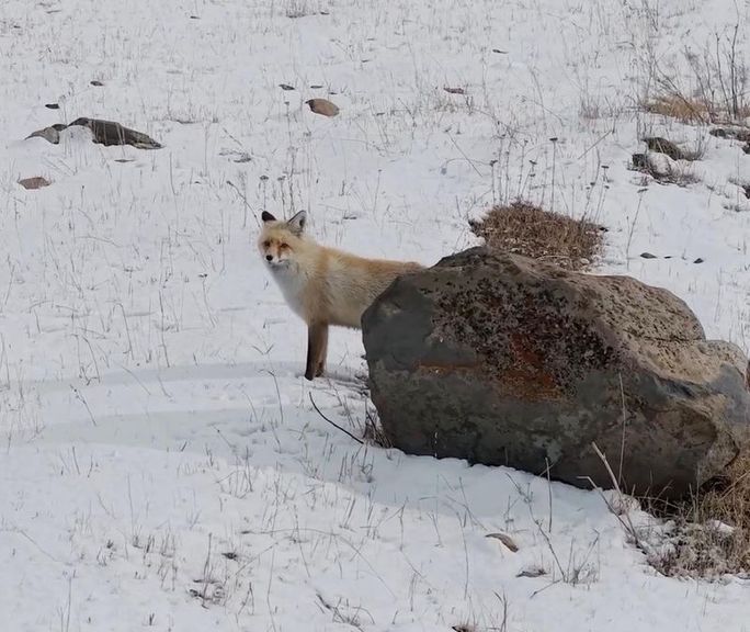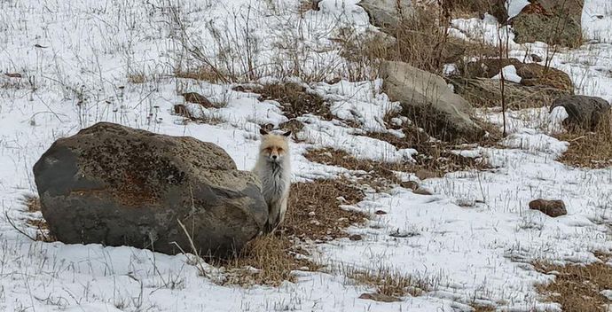 Ardahan şehir merkezine yakın bir bölgede kızıl tilkiyi kaydetmek isteyen Hacı Osman Yıldız, drone uçurdu.