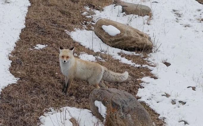 Kendisine yaklaşan drone'u gören tilkinin kısa süreli yaşadığı tedirginlik kameraya yansıdı.