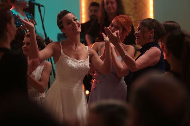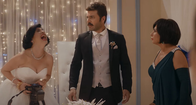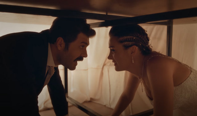 Yan yana mekanlarda düğünleri olan eski sevgilileri canlandıran İrem Sak ve Şahin Irmak’ın karşılaşma sahnesinden fotoğraflar dikkat çekti.