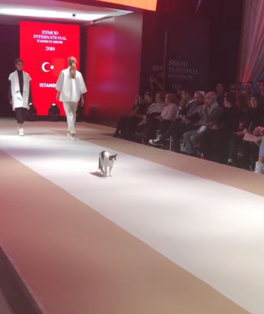 Vakko Esmod Uluslararası Moda Akedemisi'nin İstanbul'daki bir AVM'de düzenlediği defilede, modellere bir kedi eşlik etti. Kedinin modeller yürürken podyumda kendi halinde takılması dünya basınına haber oldu