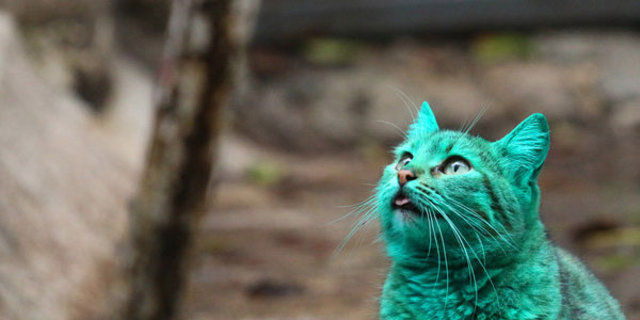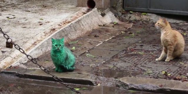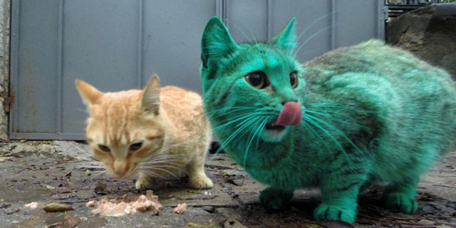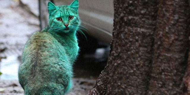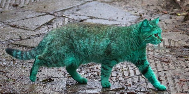 Bulgaristan'ın Varna kentinde görülen yeşil kedinin sırrı çözüldü