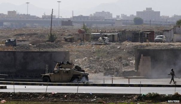 Cumhurbaşkanlığı Sarayı'nın bulunduğu Seb'in Meydanı ve Mesbahi Kavşağı civarında, saray muhafızlarıyla Husi militanları arasında çıkan çatışmalar nedeniyle askerler de tank ve ağır silahlarla sarayın etrafını kapattı; muhafızlar ise saraya giden bütün yolları kapattı.