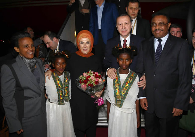 Cumhurbaşkanı Erdoğan, Afrika Boynuzu ülkelerini kapsayan resmi ziyaretlerinin ilk durağı Etiyopya'da, Başbakan Hailemariam Desalegn tarafından resmi törenle karşılandı