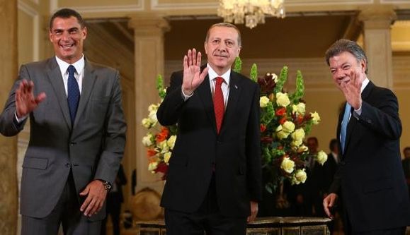 Cumhurbaşkanı Erdoğan'ın bir önceki durağı ise Kolombiya'ydı. Erdoğan, Kolombiya Devlet Başkanı Santos ile Kolombiya Cumhurbaşkanlığı Sarayı'nda gerçekleştirdikleri baş başa ve heyetler arası görüşmenin ardından resmi öğle yemeğinde de bir araya geldi.