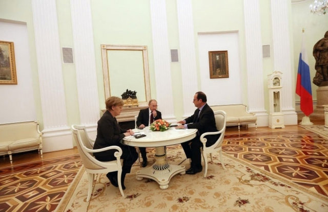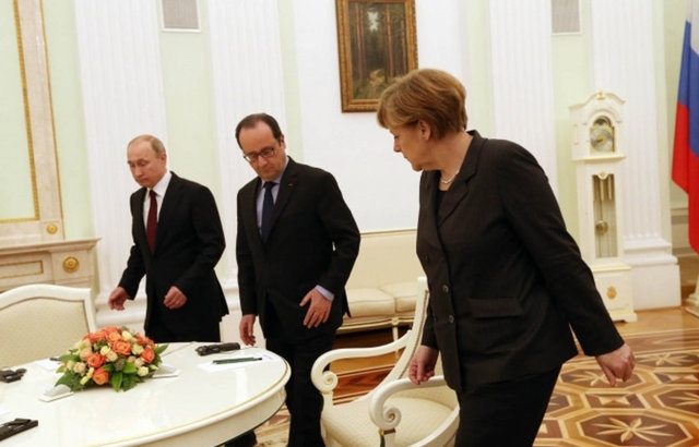 "Normandiya dörtlüsü" olarak bilinen Fransa Cumhurbaşkanı François Hollande, Almanya Başbakanı Angela Merkel, Rusya Başkanı Vladimir Putin ve Ukrayna Cumhurbaşkanı Petro Poroşenko, Ukrayna'daki ihtilafa çözüm bulmak için Çarşamba akşamı TSI 19:10'da masanın başına oturdu. Perşembe sabahı saatler 9:00 gösterirken dört ülke liderinin 10-12 madden oluşacak yeni barış planı üzerindeki çalışmalarını tamamladıkları duyuruldu.