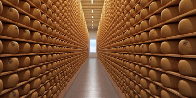 İtalya'daki Credem Bank, parmesan peynirini yerli üreticilerden ucuz kredilerle alır ve peynirin olgunluğunu garantileyen bir fiyat verir buna göre parmesan tekerlekleri banka kasasında emniyetli bir şekilde saklanır.