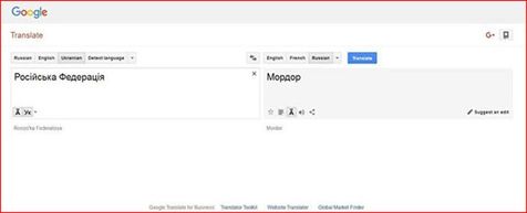Rus resmi haber ajansı Sputnik’e göre, Google Translate'te Ukraynacadan Rusçaya çeviri yaparken, bazı kelimelerde aranan karşılığın verilmediği ortaya çıktı. Bu aramalar içinde en dikkat çekeni ise ‘Rusya Federasyonu’ oldu. Zira Google Translate’in metin bölümüne Ukraynaca “Rusya Federasyonu” anlamına gelen 'Російська Федерація' yazıldığında, Rusça 'Mordor', yani 'kara ülke' olarak çevriliyor.