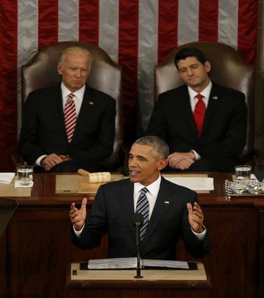 Görev süresi 2016’da dolacak Obama da Kongre’de başkanlığının son “Birliğin Durumu” konuşmasını yaptı. Son olduğu için önceki yıllara göre bu kez kısa bir konuşma yapmayı deneyeceği esprisiyle sözlerine başlayan Obama, 59 dakika boyunca ekonomiden dış politikaya, terörden Amerikan değerlerine kadar birçok konuyu ele aldı.
