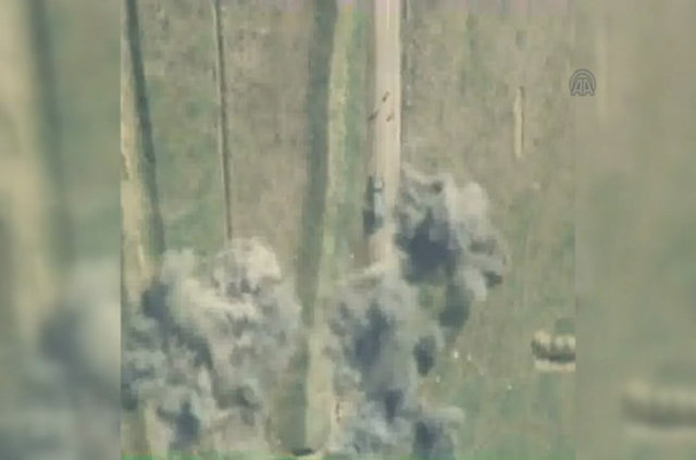 Daha sonra Azeri güçleri araçların bulunduğu bölgeyi bombalıyor.