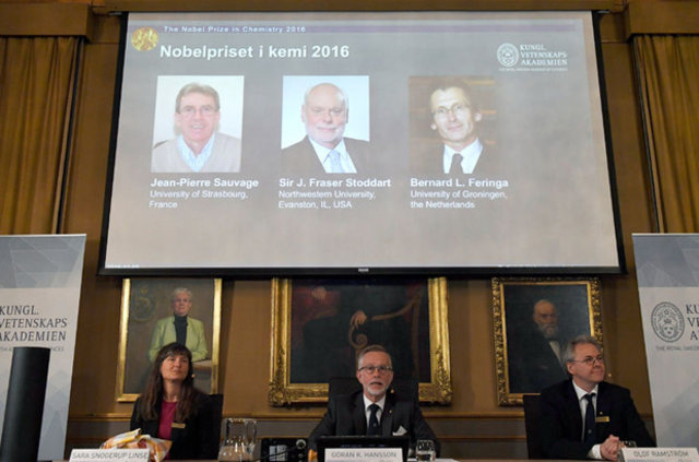 Bu yılın Nobel Kimya Ödülü'nü ise Fransız Jean-Pierre Sauvage, İngiliz Sir J. Fraser Stoddart ve Hollandalı Bernard L. Feringa kazandı.